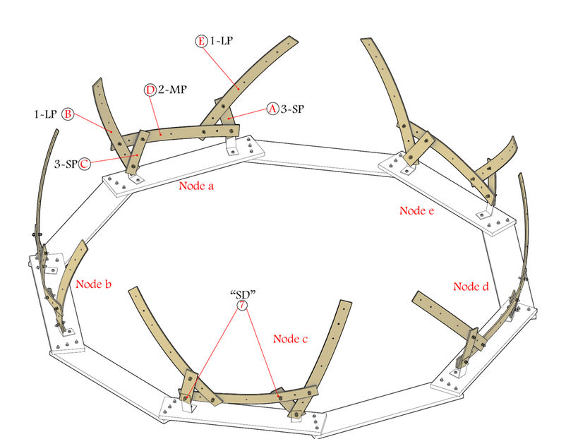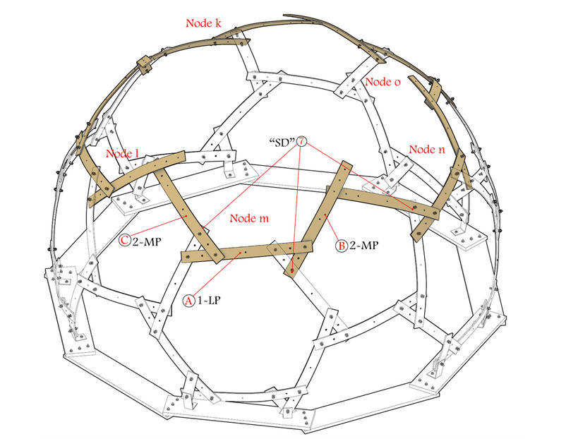 Design and build a dome (Half Sphere) with 6 meters in diameter and through research and testing manage to establish the most rational and appropriate design option based on the icosahedron grid reciprocal structure.
